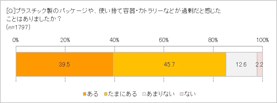使い捨て容器や袋などが過剰だと思ったことがある85.2%