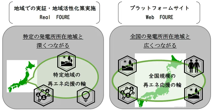 ・「FOURE構想」に賛同したメンバーの再エネ発電所がある地域等において、レジリエンス強化・地域活性化に資することを目的とし、FITにたよらない事業モデル等の共同実証の検討に取り組みます。