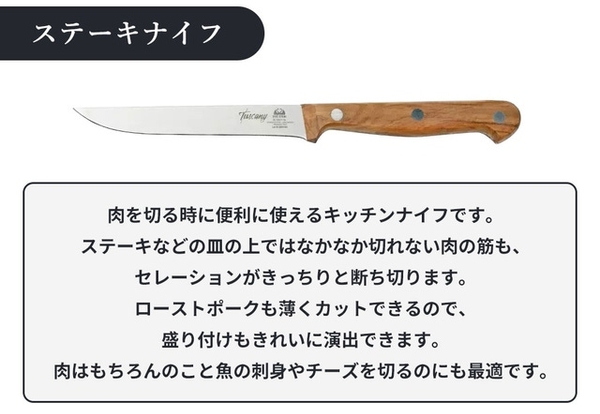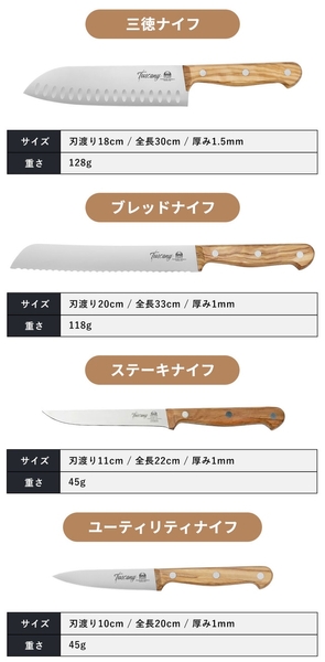 今回【トスカーナナイフ】は、食材に合わせて4種類のキッチンナイフをご用意しました。