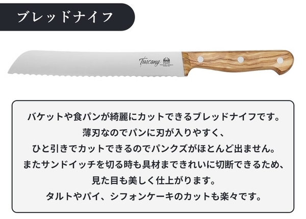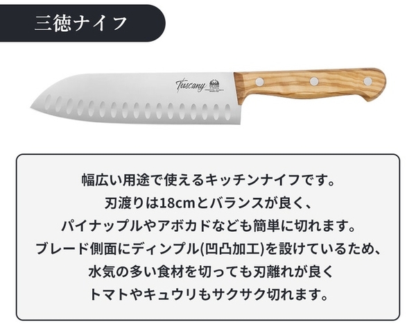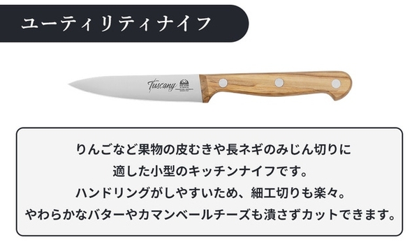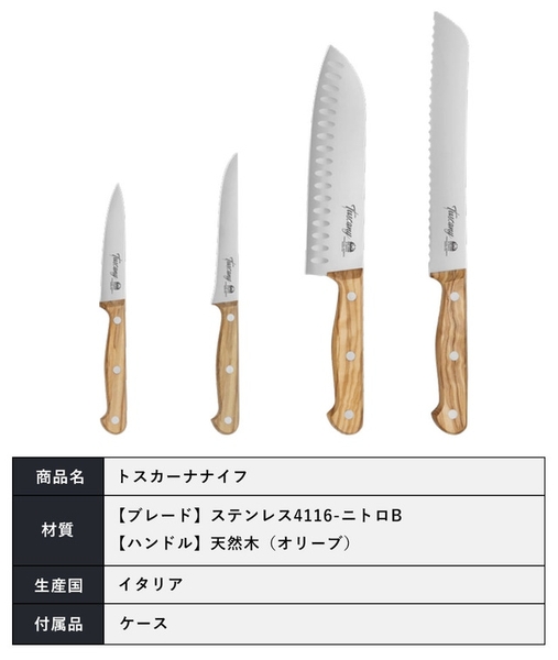 【トスカーナナイフ】のハンドルにトスカーナ産のオリーブを使っているのがその名の由来。