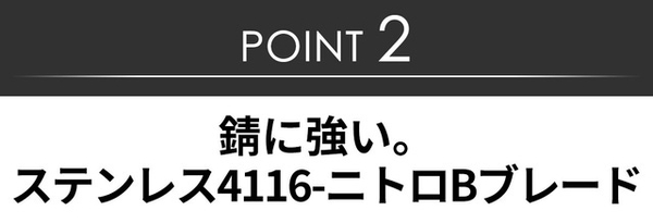 ブレードに耐腐食性に優れたステンレス4116-ニトロBを使用。硬く薄いので切れ味も抜群