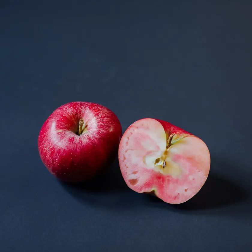 通常のりんごと違い、ルビースイートの切った断面は鮮やかな赤。この品種はまだ一般の市場には流通しておらず、農園の方に依頼し、様々な農園の方から集めてもらい数量を確保いたしました。生産量も少なく、入手も困難なとても希少性の高いりんごとなっております。そのため数量限定での販売となり赤肉りんごがなくなり次第販売終了となります。又、ルビースイートという名前は赤肉りんご品種の中でも甘味が多い品種であることからその名が名付けられました。名前も可愛く、見た目も良い。そんなルビースイートとJune CHEESECAKEが出会い、日本初のチーズケーキが誕生しました。商品名もルビースイートから美しさをとり、「Ruby CHEESECAKE(ルビーチーズケーキ)」と名付けました。