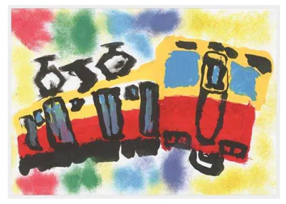 受賞のポイント:ダイナミックな絵です!鉛筆などによる下書きはなく、一気に太い筆で車体を描き上げた後に、背景を描いていますね。背景は布タンポンで叩いて絵の具を置いたのだと思います。画面の収まりが良いですね。天性のデッサン力が備わっているのでしょう。大迫力で「引退!赤胴車」を描いてくれました。来年以降も応募してもらって成長をみていきたいと思う方です。