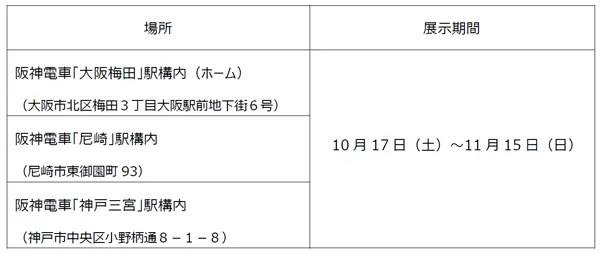 また、受賞作品は、大阪梅田駅・尼崎駅・神戸三宮駅の各駅構内でシート展示するとともに、本日からホームページに掲載します。併せて、大賞・準大賞の作品は、阪神電車車内にポスターとして随時掲出します。