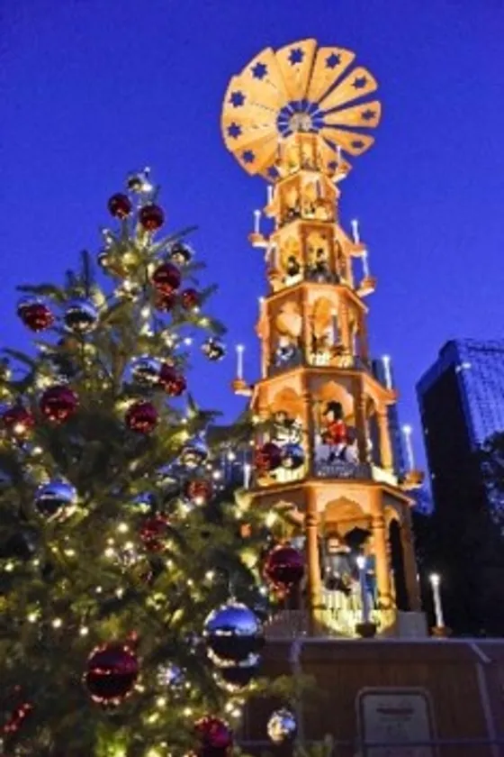 1. ドイツからやってきた巨大な木工芸品『クリスマスピラミッド』は世界最大級の高さ14m以上都会のビル街にそびえる姿は圧巻!