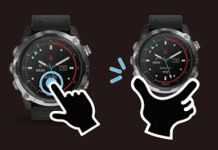 潜水中に、手袋が厚いためボタンを押すことができない場合、ディスプレイをダブルタップすることでページを切り替えることができます。