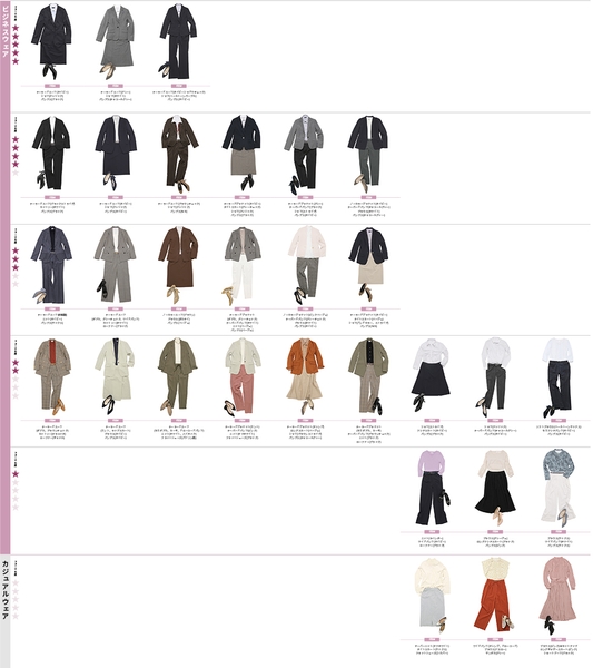 ビジネスウェアの多様化により、スーツスタイルからビジネスカジュアル(ビジカジ)、よりカジュアルダウンした装いまで、様々なウェアリングが仕事着として定着しています。これらのウェアリングはコーディネートするアイテムによっても見た目や印象が大きく変わるため、現在ではビジネスにおける“フォーマル”と“カジュアル”の境界線が曖昧になっており、ビジネスウェアの多様化が進むとともに、ウェアリングに関するビジネスパーソンからの問い合わせも増加しています。このような背景を踏まえ、今回当社では様々なウェアリングに対してフォーマル度を設け、このフォーマル度合いを★の数1~5で表現することで、どのようなウェアリングがどの程度フォーマルなのかを可視化したガイドラインを策定しました。