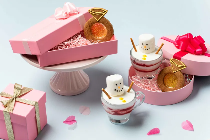 シェフがその場でデザートを仕上げて提供する「ライブステーション」では、真っ赤なリップスティックチョコレートを添えたホットチョコレートが登場。スパイス香るリップスティックチョコレートを混ぜながらお楽しみください。