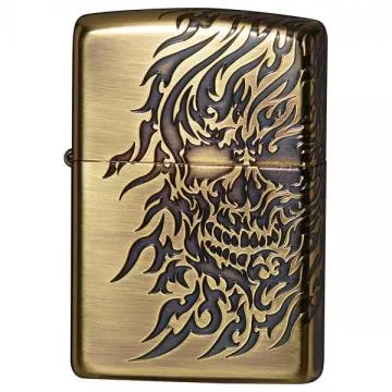 古美仕上げのボディに、3面に渡りトライバルデザインを施した逸品。トライバル調のスカルが印象的で、プレゼントにも人気の商品です。