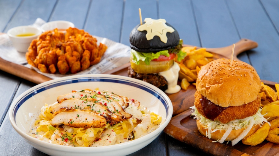 1Fレストランでは、紅ズワイガニの旨みを閉じ込めた自慢の手作りカニクリームコロッケに、自家製デミ グラスソースをたっぷりかけた「自家製デミグラ グラコロバーガー」や、とろ~りとろける濃厚チーズを雪に見立てた「淡路島ホワイトスノーバーガー」、濃厚なクリームソースが、高たんぱくの淡路鶏とモチモチ食感のタリアテッレと絡み合う「淡路鶏の濃厚クリームスパゲティ」など、冬にこそ食べたい、贅沢で心躍るラインナップを用意。