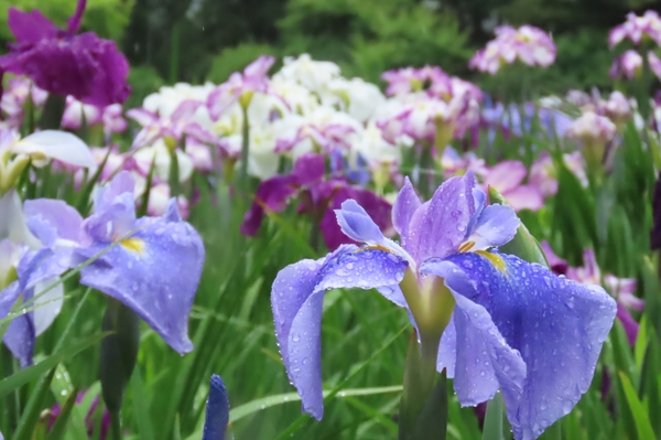 毎年恒例の「花菖蒲の小道」も設置されており、花のすぐそばまで足を運べるよう、観賞の距離をぐっと近づけています。朝露に濡れた花びらや、雨上がりの艶やかな色合いを、ぜひ間近でご堪能ください。