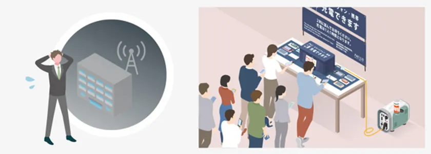 「BISTA」には非常時に長期間電源を確保できる最新のカセットボンベ式発電機、また10台の通信機器を同時に高速充電できる充電器がセットされていますので、地域住民のための充電ステーションとしての役割を果たすことができます。