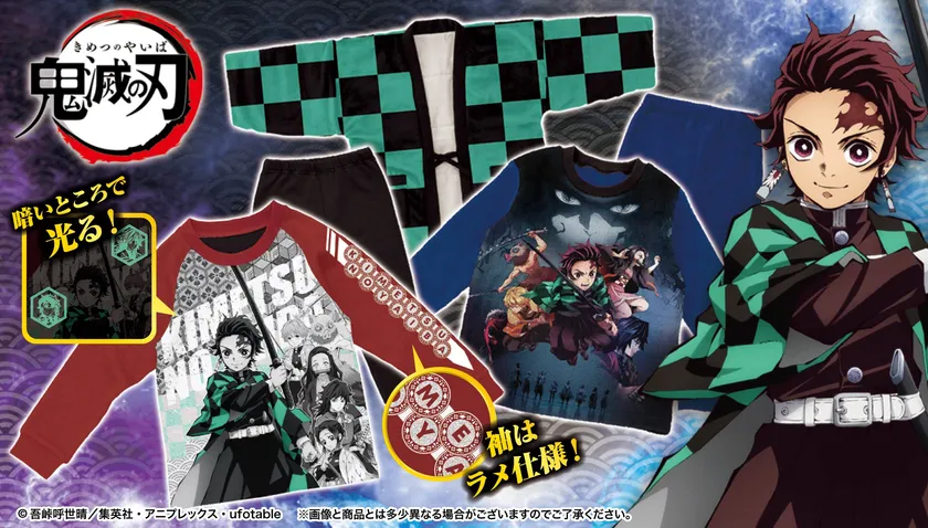 TVアニメ「鬼滅の刃」の暗闇で光る裏毛起毛パジャマが登場! 炭治郎や禰豆子のなりきりデザイン半纏やベストも!