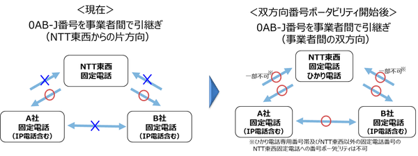 固定電話サービス提供事業者間における双方向番号ポータビリティの開始について
