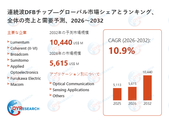 上記の図表/データは、QYResearchの最新レポート「連続波DFBチップ―グローバル市場シェアとランキング、全体の売上と需要予測、2026~2032」から引用されている。
