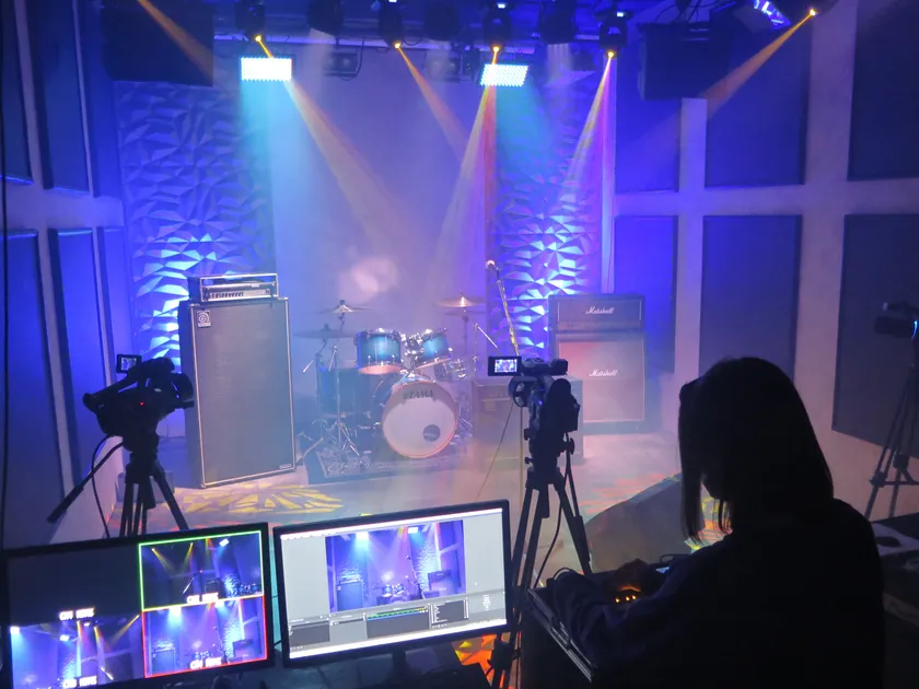 練習スタジオと違い、天井高も3メートル以上の設計で、ライブハウス同様の照明を設置し、スタジオながらもライブハウス並に充実した環境からの配信が可能です。
