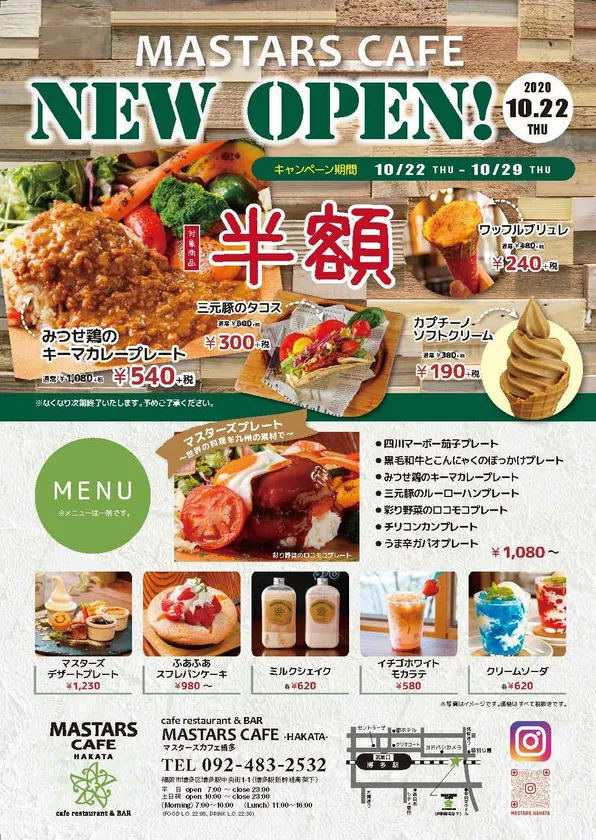 居酒屋からの脱却、食事需要への転換! 『MASTARSCAFE -HAKATA-(マスターズカフェ博多)』 新規OPEN! 10/29まで半額セール実施&リニューアル記念価格でご提供