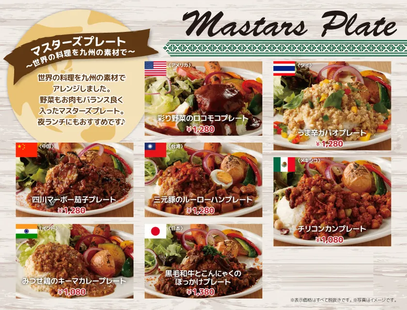 “世界の料理を九州の食材で”というコンセプトをもとに、世界の料理を九州の食材で再現したプレートご飯をご提供。