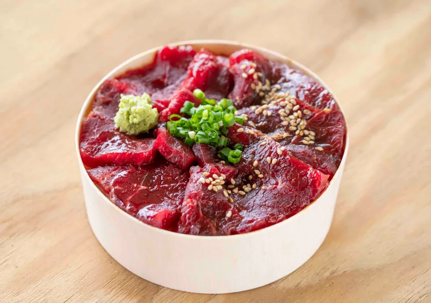 「赤身」と「赤身の漬け」の2種類が楽しめます。やわらかくスジが少ない「赤身」には濃厚な旨み。甘めの醤油だれをしみ込ませた「赤身の漬け」はごはんとの相性ぴったりです。