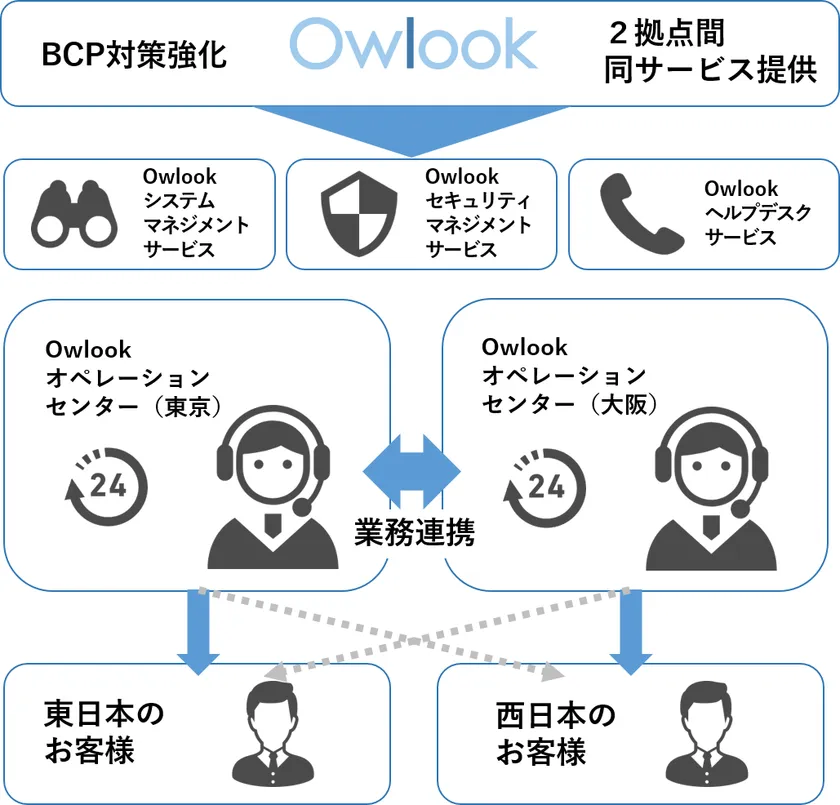 大阪拠点の設備と機能の強化を実施し、東京と大阪のオペレーションセンターによる既存のサービス提供に加え、BCPオペレーションサービスを新たに開始いたします。