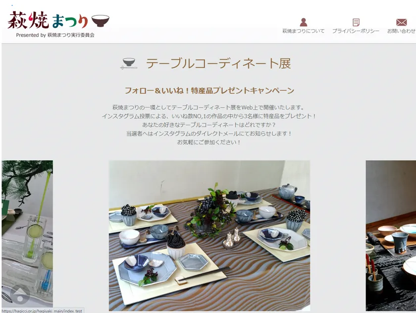 作家さんの話を聞きながら直接質問などのやりとりができる「窯元インスタライブ」や、萩焼の使用シーンが紹介され、好みのコーディネートに投票できる「テーブルコーディネートフォトコン」を実施。見るだけではない、参加型コンテンツを用意することで萩焼まつりを盛り上げます。