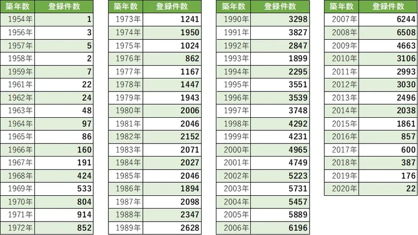築年別分布表