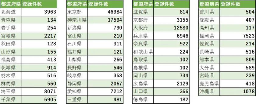 表2:お気に入り登録物件の都道府県別所在地分布