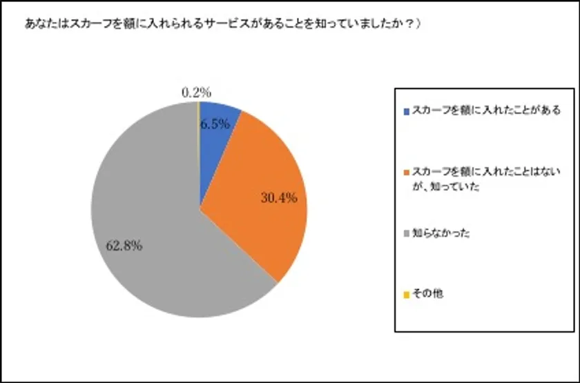ただ今回の調査結果で、「スカーフを額に入れられるサービスがあることを知っていましたか?」と聞いたところ、60%以上の人が「知らなかった」と回答しました。