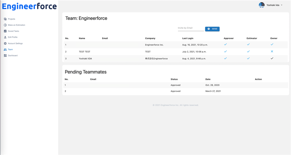 ③チームの作成(見積もり工数の共有範囲を任意に設定できます)