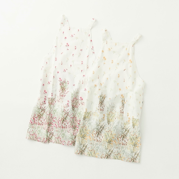 草原を思わせる爽やかなプリント柄「ハーベスト」のエプロンは、風が吹き抜けたような軽やかで動きのある、モダンな中に可愛らしさが魅力。