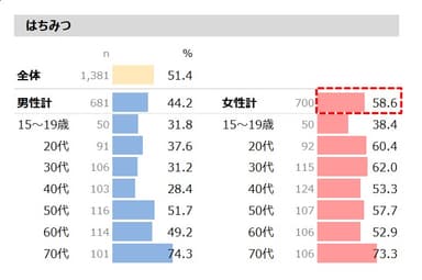 【調査結果3】男女で傾向が異なる「はちみつ」「カスタードクリーム」「メープルシロップ」