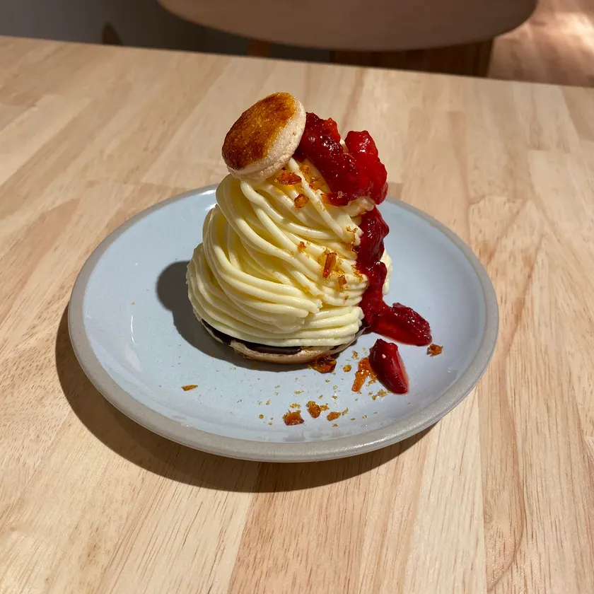 金沢のはちみつとアカシアはちみつを使った、甘さ控えめのバタークリームを使用し、はちみつで煮た苺とザクザク食感のキャラメリゼをトッピング。