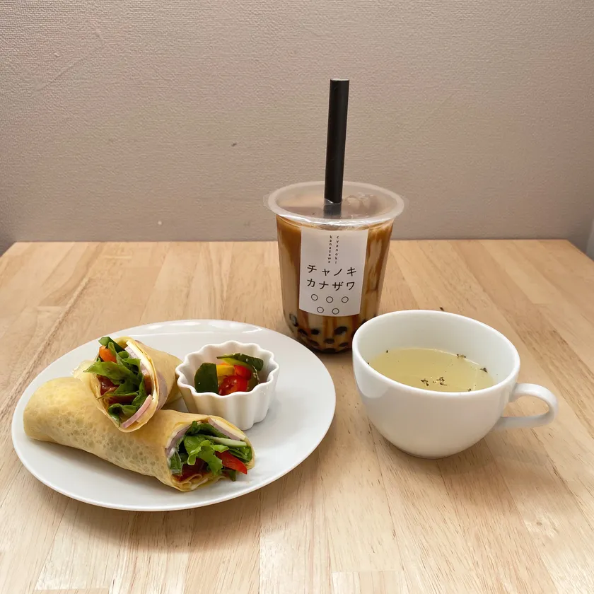 チャノキオリジナルのクレープ+自家製ハニーピクルス+ハーブソルトスープ 780円~