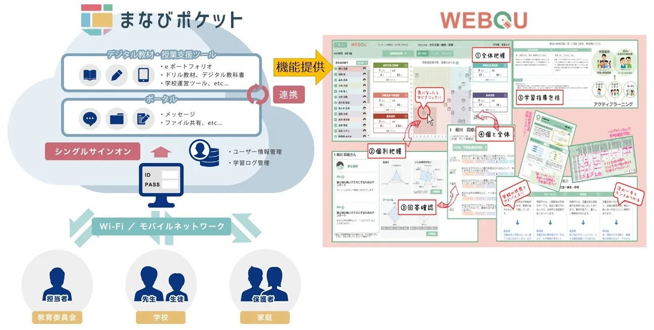 なお「まなびポケット」と「WEBQU」の提供に関して、NTT ComとWEBQU教育サポートが地方自治体と連携協定を締結するのは、全国初の取り組みとなります。