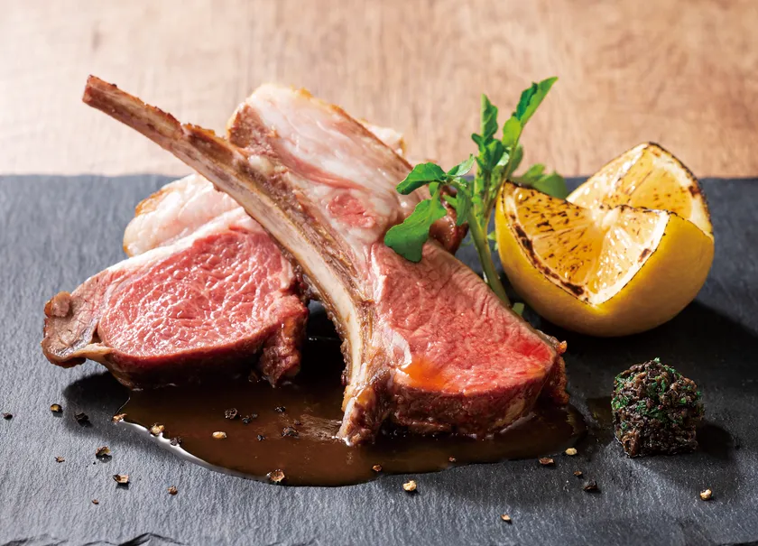 「ニュージーランド産ラムチョップのロースト トリュフ香るグレモラータ」