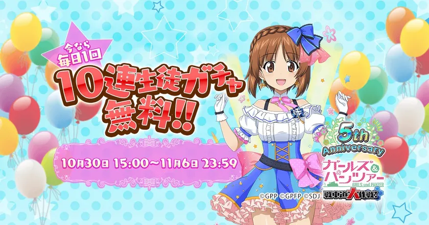 戦車道大作戦 実行委員会(株式会社博報堂DYミュージック&ピクチャーズ、株式会社ゲームゲート)は、iOS/Android向けゲーム『ガールズ&パンツァー 戦車道大作戦!』において、5周年記念衣装生徒登場についてお知らせいたします。