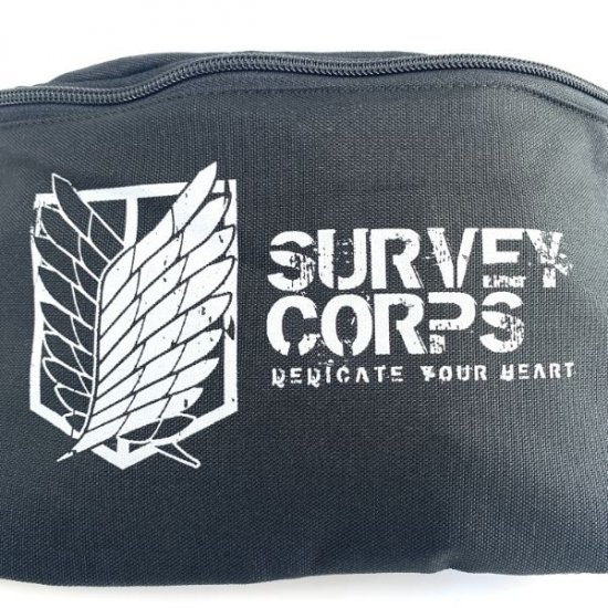 調査兵団のエンブレムが描かれたボディーバッグです。使い込んだ風合いが出るようにプリントが施されています。下には”Dedicate your heart”「心臓を捧げよ」の文字が入っていますよ!シンプルだけどカッコいいそんなデザインです♪