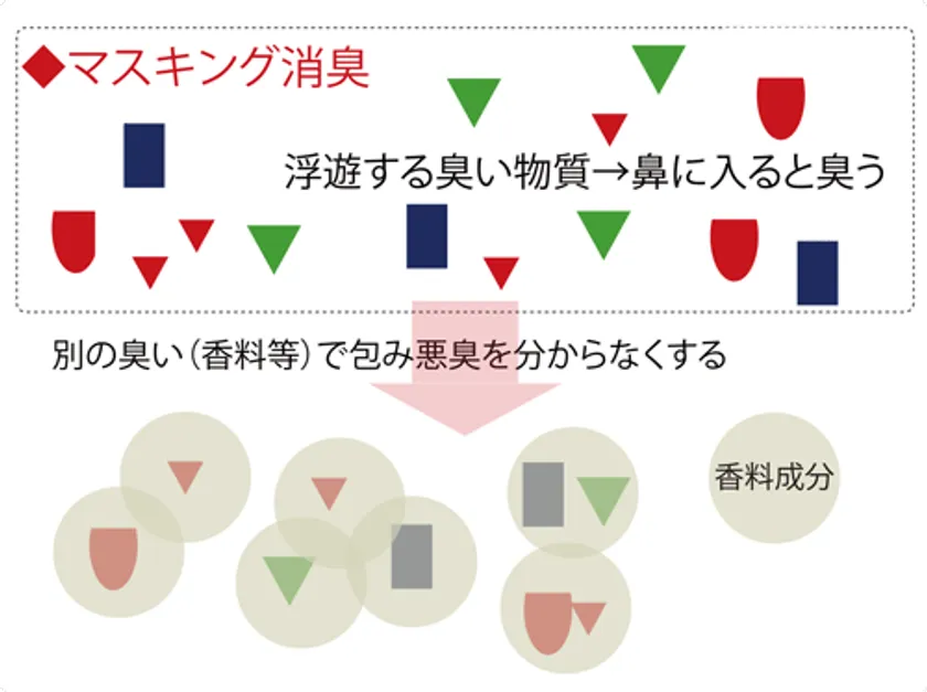 フレグランスに調合された特許消臭剤で、悪臭を感じ難くしながら、ほのかな香りでマスキング。