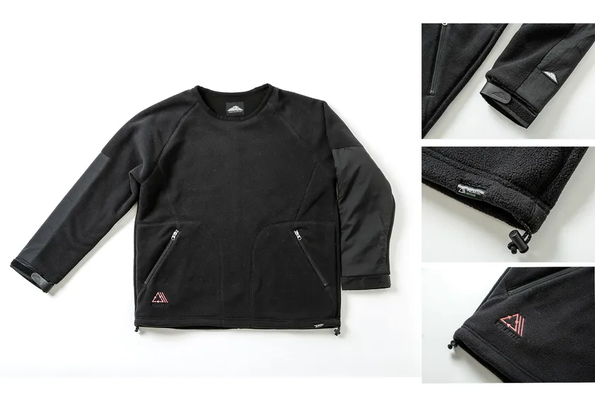 ポーラテック(R)初の「リサイクルポーラテック」を使用したクルーネックフリース。腕の切り替えやポケット、裾や袖の調整でスタイリッシュな仕上がりです。