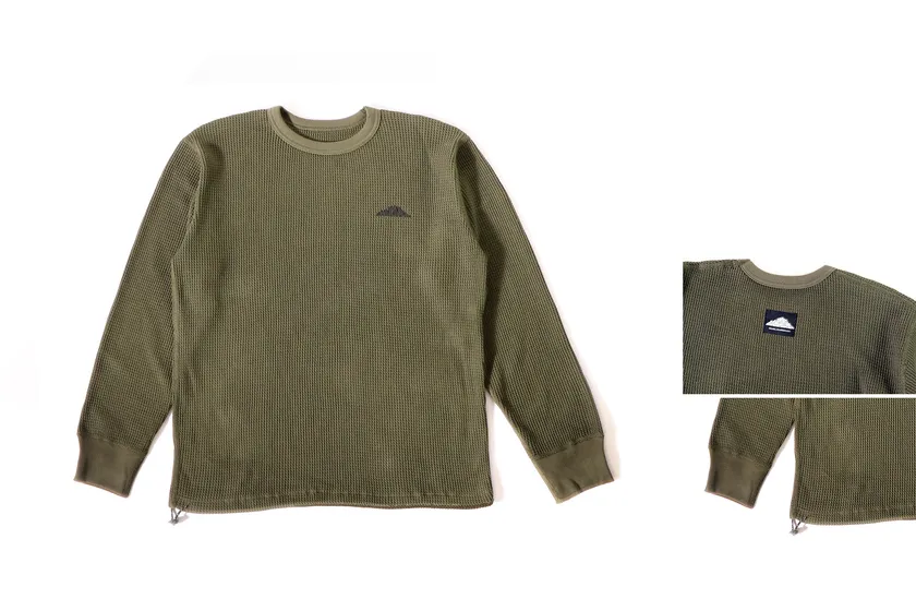 肉厚で大きめのワッフル目を緩やかに編み上げたリサイクルコットンのカットソー。縫製面には4本針フラットシーマを施し、着心地にもこだわっています。