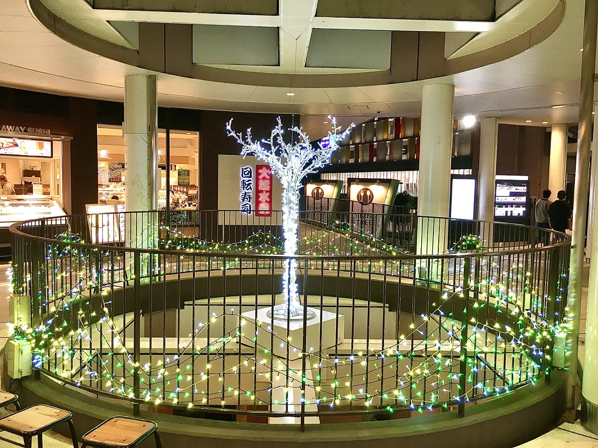 4.飲食店が連なる連絡通路には暖かみを感じられるイルミネーションが3年ぶりに一新
