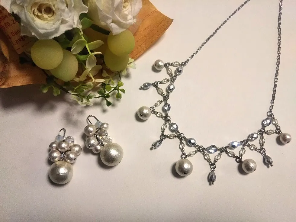 コットンパールや淡水パール、樹脂パールを使ったアクセサリーをご用意いたしました。
