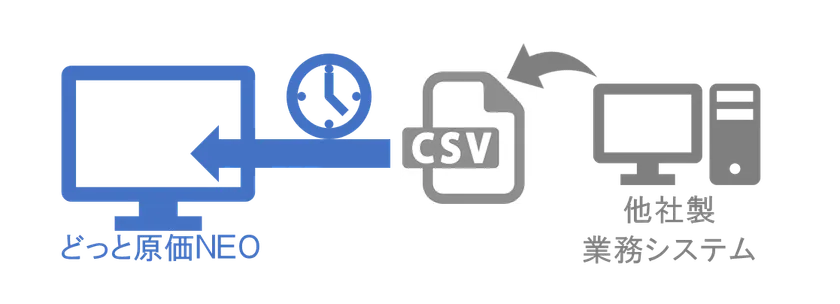 あらかじめ設定したタイミングで外部データからの取込みが自動実行されます。(どっと原価NEO クラウドは2021年5月対応予定)
