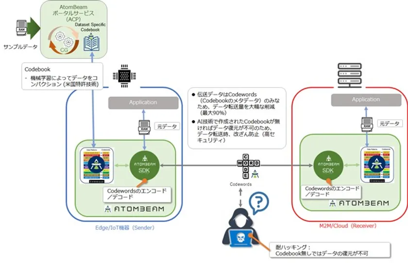AtomBeam社は、2017年設立された米国に本社を置く企業で、IoTデータ伝送の業界標準を目指すソフトウェア会社です。AtomBeamの特許取得済みデータ圧縮技術は、AI/機械学習を活用して、データ伝送量を大幅に削減し、帯域幅の節約、遅延の最小化という利点を提供します。AtomBeamのライセンスは、IoT機器、ゲートウェイ、データセンターサーバー、クラウドストレージのメーカーや、衛星・通信などのネットワーク企業に提供されています。