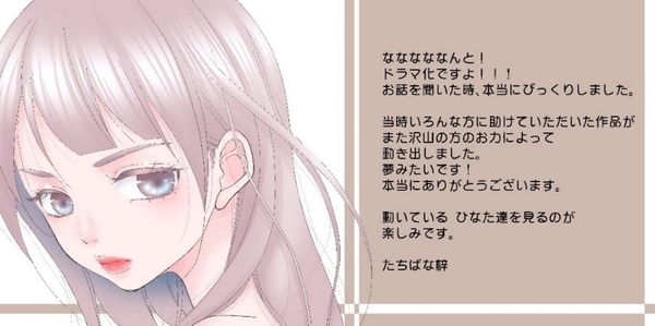 初めてこの作品を読んだ時、自分の想像を毎度上回る展開に魅了され、ページを捲る手が止まりませんでした。そして今、ひなたを自分が演じられることが本当に楽しみで、撮影が始まる日を毎日ドキドキしながら待っています。今回ドラマでは原作とは少し違ったエンディングが待ち受けています。原作を好きな方にも、これからこの作品に出会う方にも楽しんでいただけるよう、ひなたの気持ちをしっかり受け継いで、キャスト、スタッフの皆様と丁寧に作り上げていけたらと思っています。是非、是非!楽しみに待っていてください。