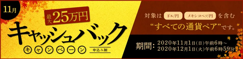 FXプライムbyGMO、 【最大25万円】をキャッシュバック! すべての通貨ペア対象のキャンペーンを11月1日より開始!