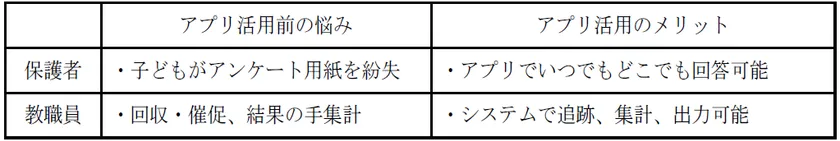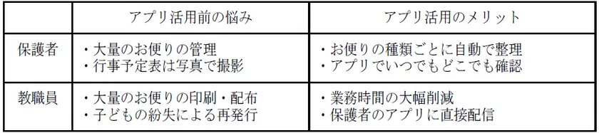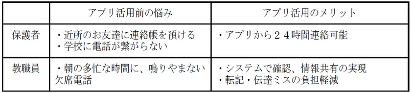 また、以前より「欠席連絡をする際、連絡帳を届けるのが大変」「学校に電話が繋がらない」「お便りを子どもが紛失してしまった」「幼稚園の時はアプリで連絡が出来ていたのに」「学校でもアプリを導入して欲しい」などの声がSNS上で多く投稿されており、保護者からの要望も高まっています。