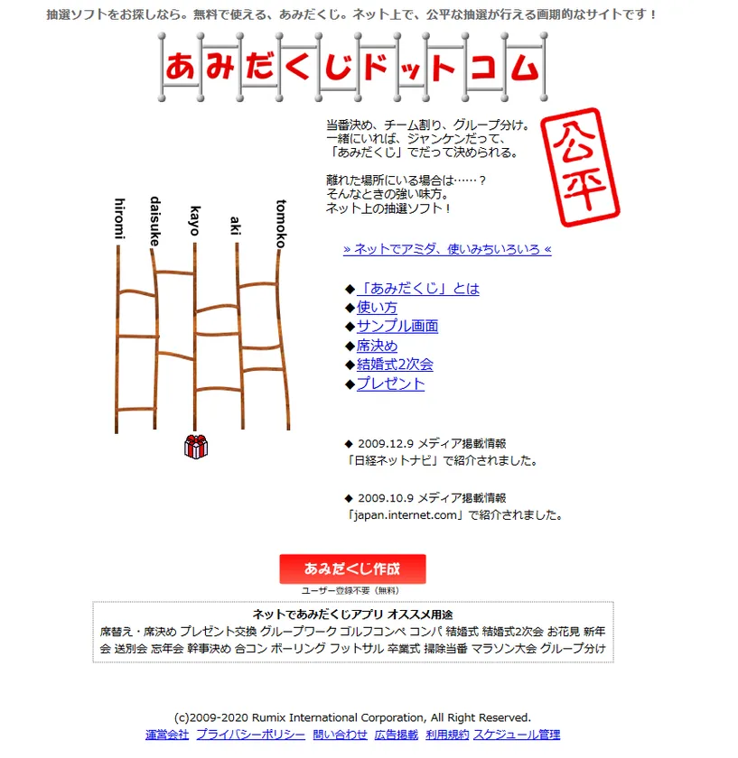 あみだくじドットコムのWebサイト