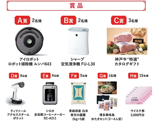 ■内容:期間中、ウイステ専門店街(イオンスタイル野田阪神を除く)にて2,000円(税込)以上お買上で応募用紙を1枚進呈いたします。館内設置の応募箱に投函いただくと、後日抽選で40名様にロボット掃除機 ルンバ643など豪華賞品をプレゼント!