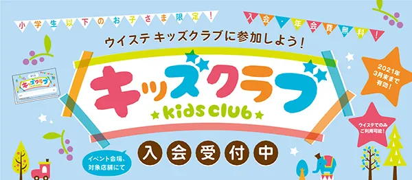 ■内容:リニューアルに伴い、小学生以下のお子様にうれしいサービスをお届けする「ウイステキッズクラブ」ができました。この機会に是非ご入会ください。